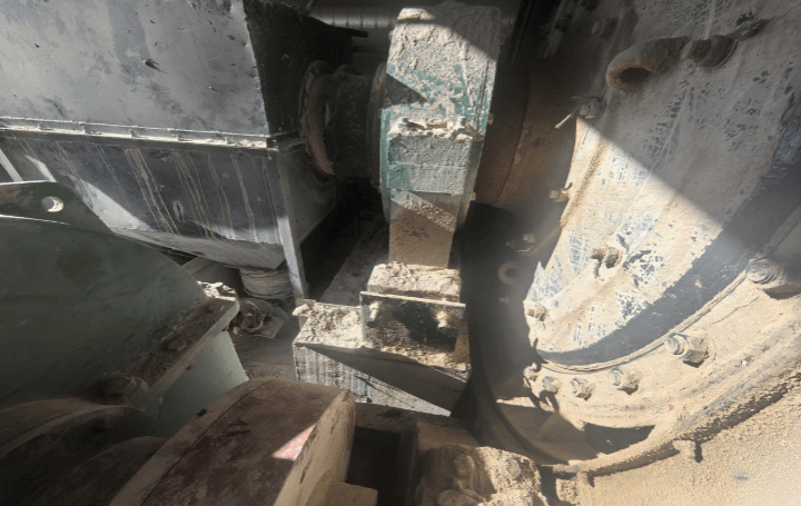 事故发生在磐石商贸球磨机车间,球磨机机尾出料口与联轴器中间。机尾出料口与联轴器之间空间狭窄,间距0.5米左右,最窄处约0.2米,人员无法正常通行,球磨机减速机型号为ZD70-5-1,出厂日期:2024年6月,转速500转/分,联轴器无防护罩,现场未设置警示标识,底部空间高度约0.7米,宽度约0.5米。经现场了解,事故发生时设备处于正常运行状态,现场查勘球磨机联轴器支架有明显的摩擦痕迹。