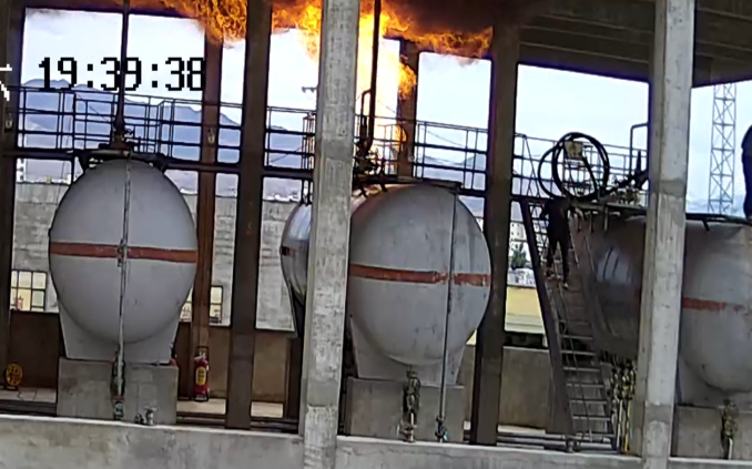 冯某及时打开喷淋系统,对102储罐进行灭火降温。同时,冯某请求在气站门口围观的相邻汽车修理厂员工报警。