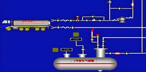 接收气源加气流程:液化石油气气源工厂→液化气槽车→供应站→装卸台柱→烃泵→储罐→压缩机→灌瓶间→加气枪+电子秤→气瓶。接收流程见下图3。