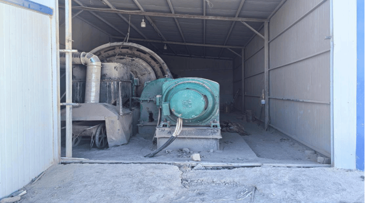 事故发生在磐石商贸球磨机车间,车间内布置有球磨机一台。球磨机车间为框架结构,墙体与顶棚采用夹心岩棉板搭建,巡检通道宽约2米,入口门被拆除,现场未设置视频监控系统。